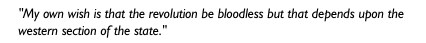 I again reiterate my prediction that the eastern part of the state will rise in revolt against the western and will yet achieve its independence even though the rivers run in blood. My own wish is that the revolution may be bloodless but that depends upon the western section of the state.